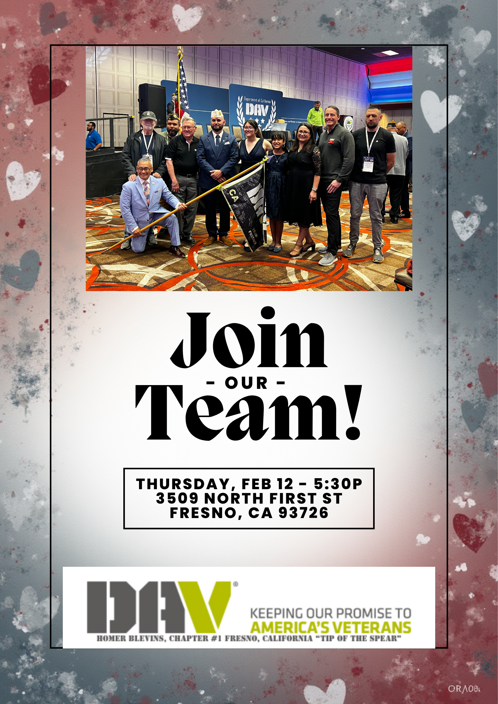 Come join us for our regular chapter meeting! Meet other local Veterans who have a shared interest in assisting their fellow Vets!